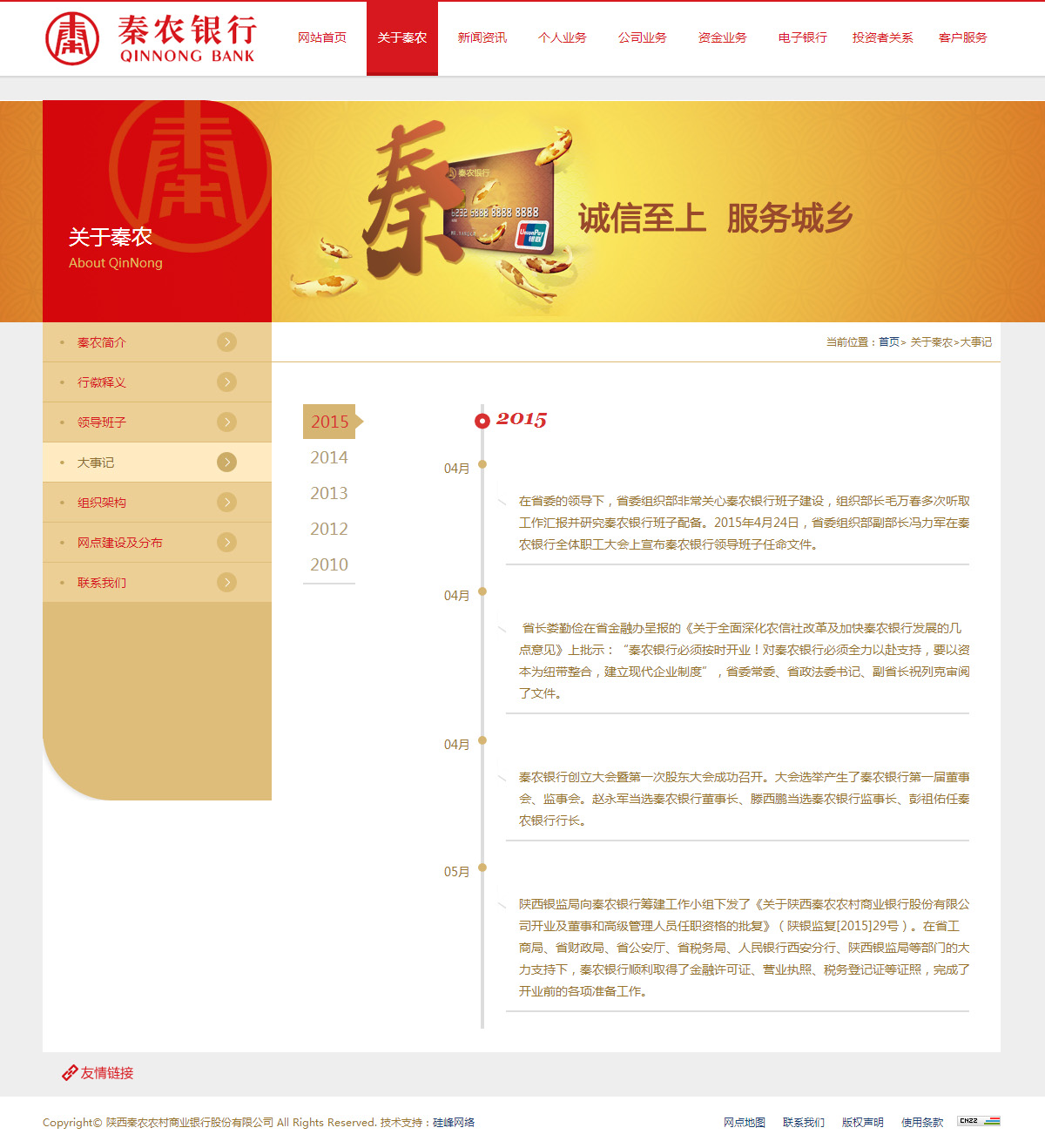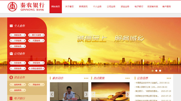 上線時間 :2015.08 關鍵詞:金融,嚴謹,大氣,時尚 網址:http://www.qinnongbank.com